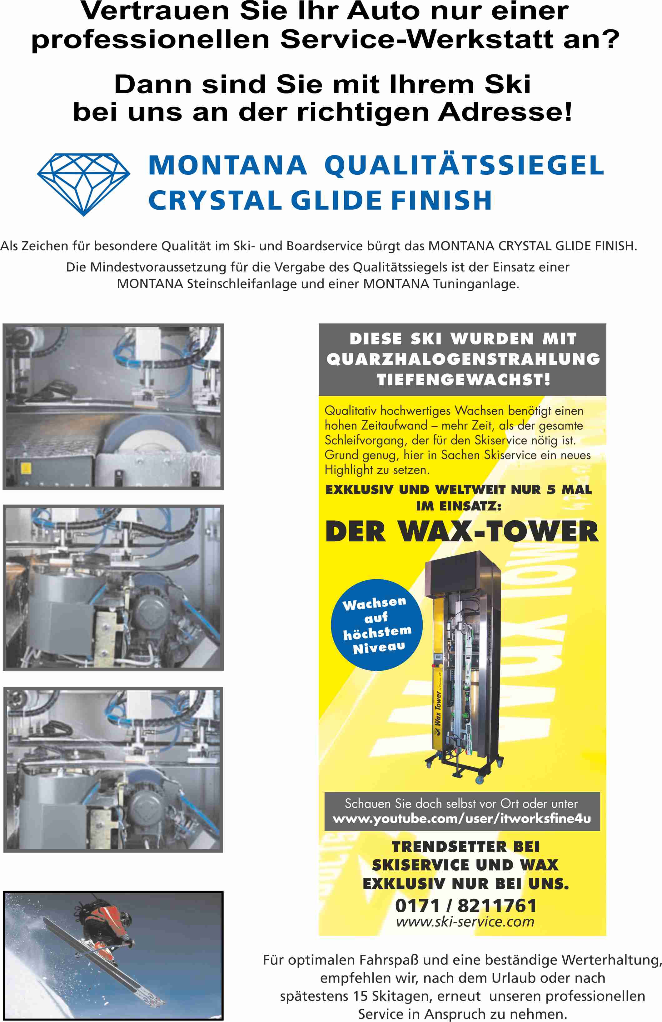 Als Zeichen für besondere Qualität im Ski- und Boardservice bürgt das MONTANA CRYSTAL GLIDE FINISH.