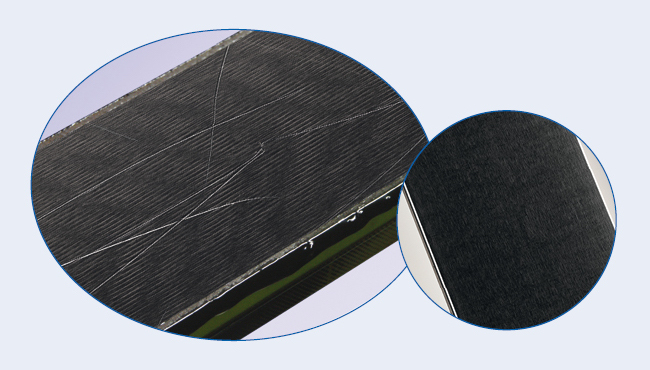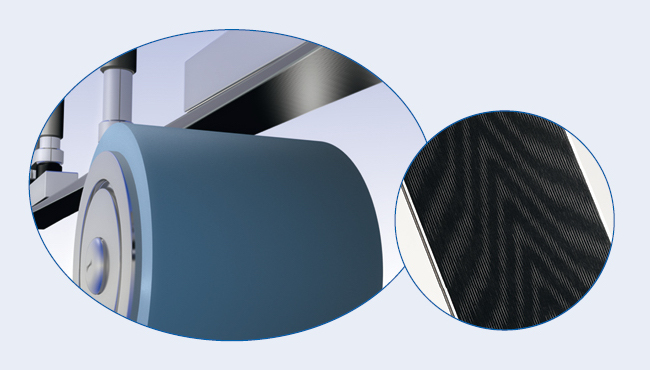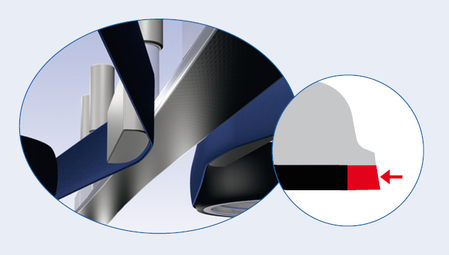 Die speziell entwickelten Keramik-Bänder werden in exakt definiertem Winkel über den einzigartigen Keramik-Gleitschuh geführt, das Resultat für die Seitenkante: